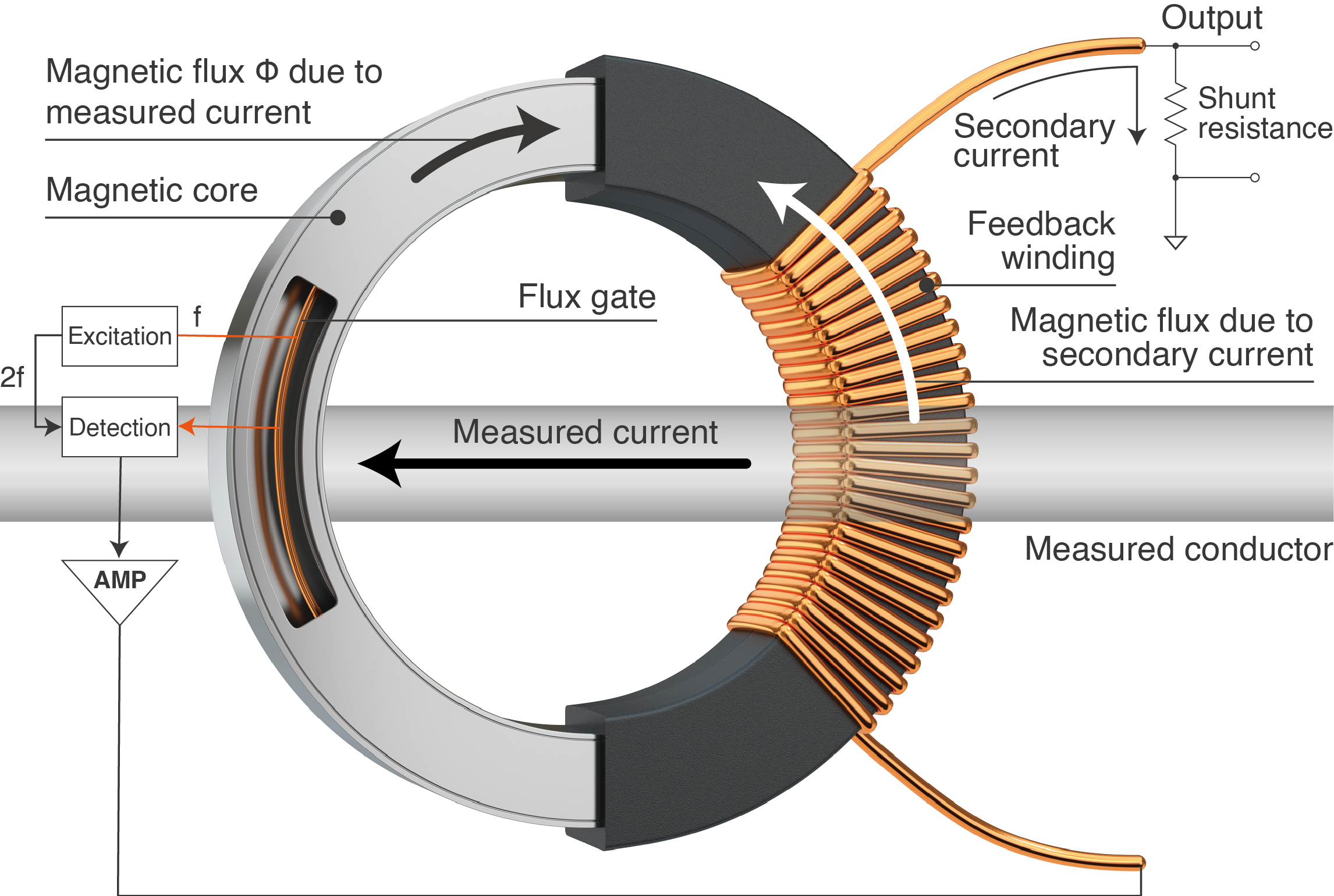 Fig. 7: Zero-flux sensor with fluxgate: Again, two measurement principles