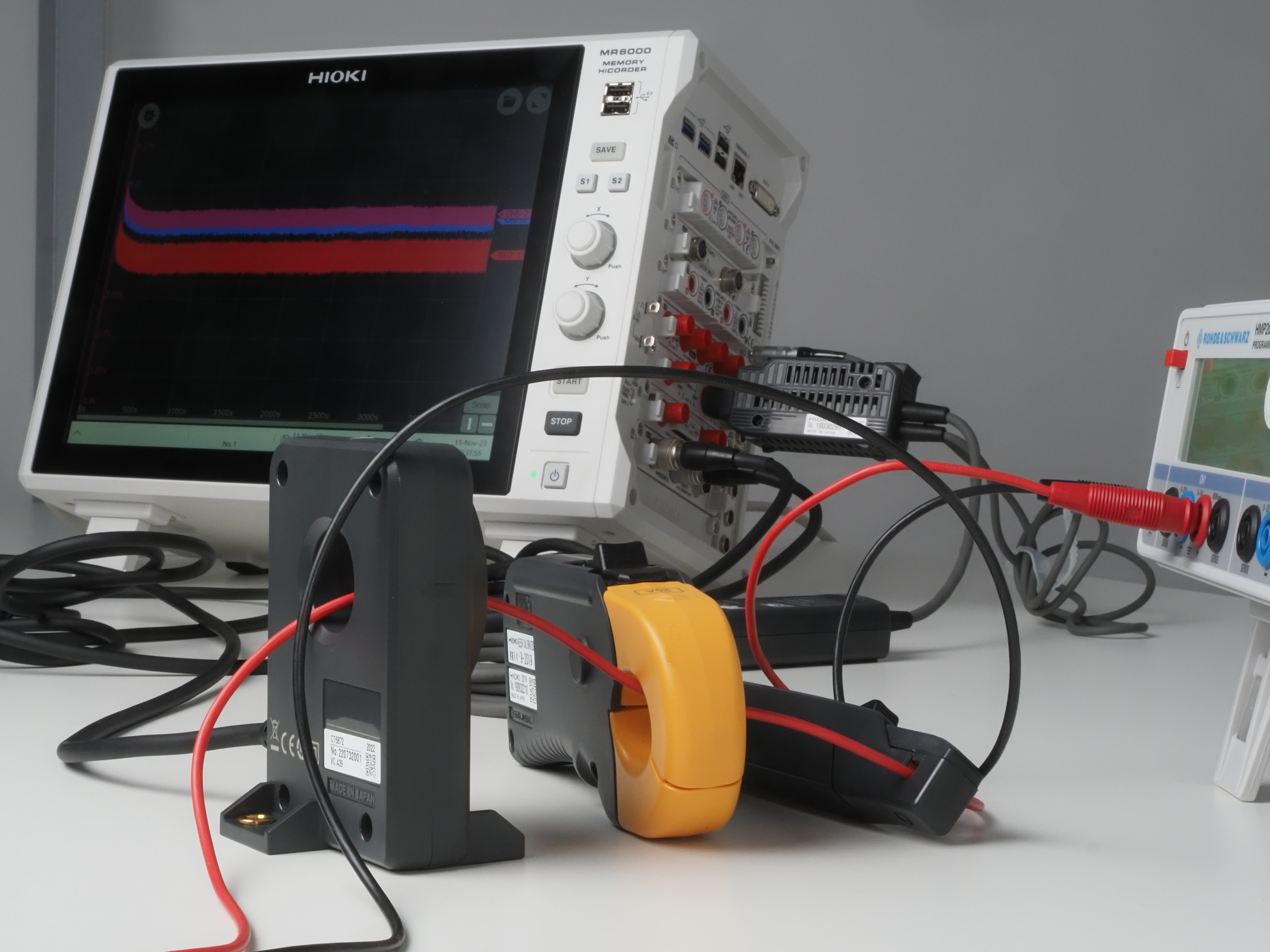As I don’t use an oscilloscope for this test but a HIOKI memory recorder, these current sensors can directly be connected to the recorder through a current sensor module called “U8977”, which conveniently also offers a 16bit resolution.