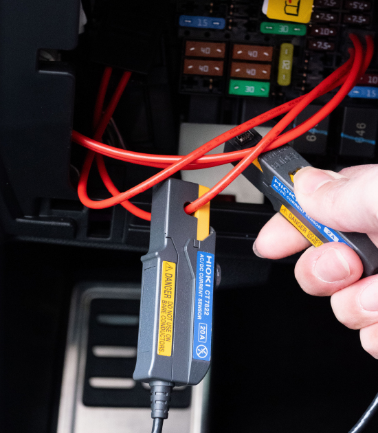 Accurate current measurement of numerous consumers in electrical systems requires sensors with utmost precision. HIOKI’s new AC/DC zero flux current sensors CT7812 (2 A) and CT7822 (20 A) allow engineers to measure currents with an impressive accuracy of ±0.3 percent. With such high precision and a minimum resolution of 0.1 mA, development engineers can obtain accurate consumption data even for low currents. This detailed information allows for significant improvements of the system energy efficiency contributing to longer operating times or extended driving ranges of EVs.