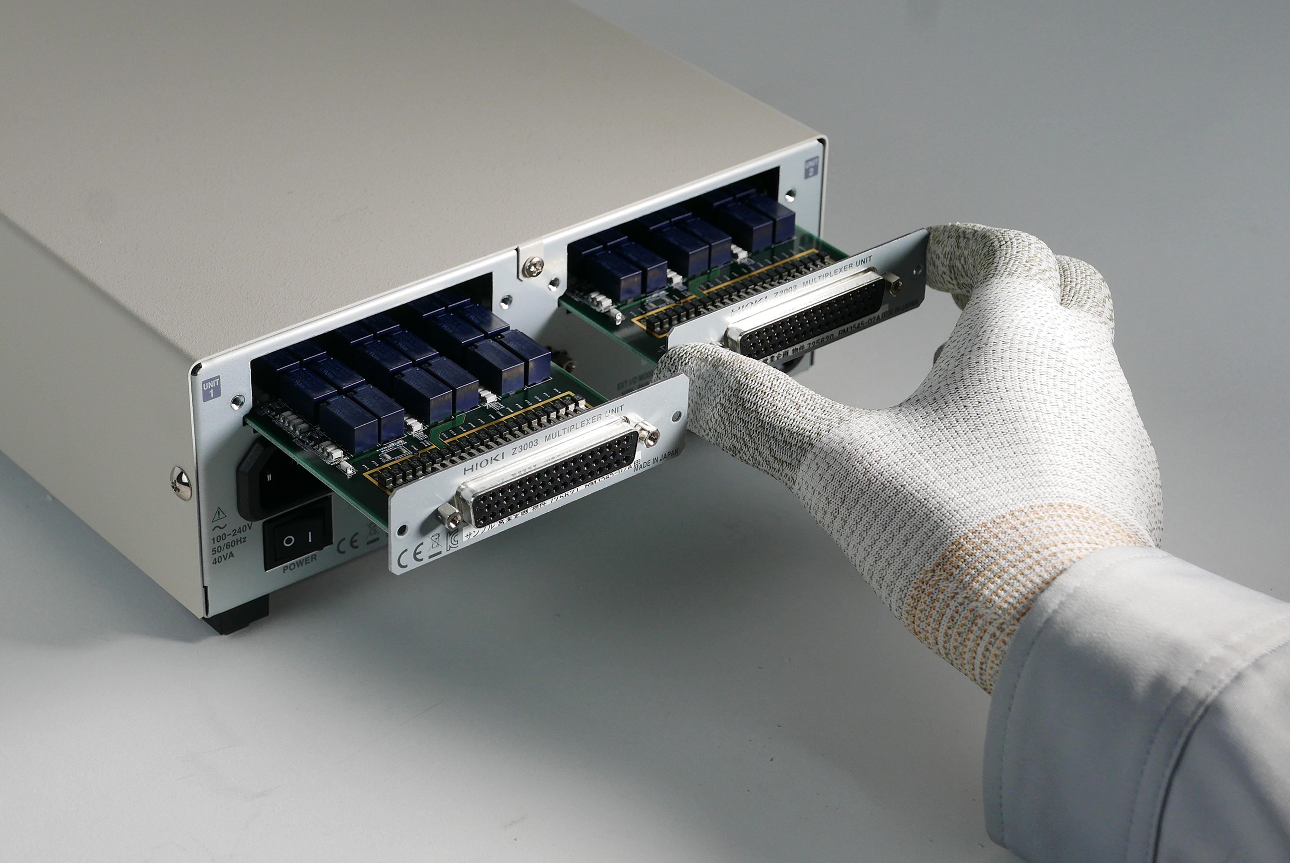 At this point, readers with production experience have any right to object that the mechanical transport of a device under test takes much longer than a few milliseconds, which clearly puts the advantage of a very high measuring speed into perspective in the overall context. To make effective use of the high measuring speed for production, HIOKI offers the RM3545-02 – a device variant with slots for multiplexer cards.