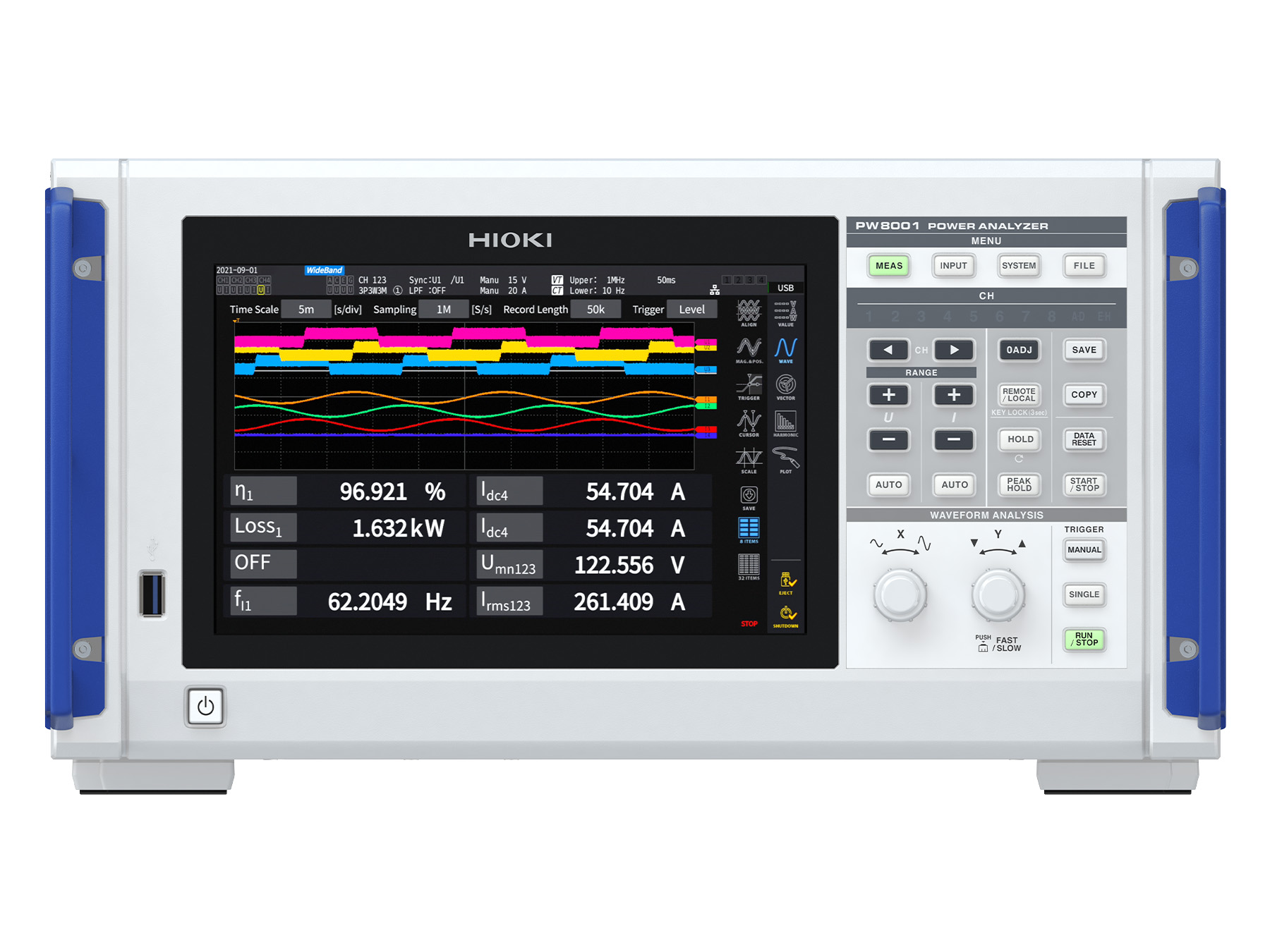 The PW8001 power analyzer and the current sensors are developed and produced by HIOKI, making the advanced automatic phase shift correction function possible. This ensures accurate phase angle measurement between the voltage and current, even at high frequencies and low power factors.Advanced Functions and Expandability