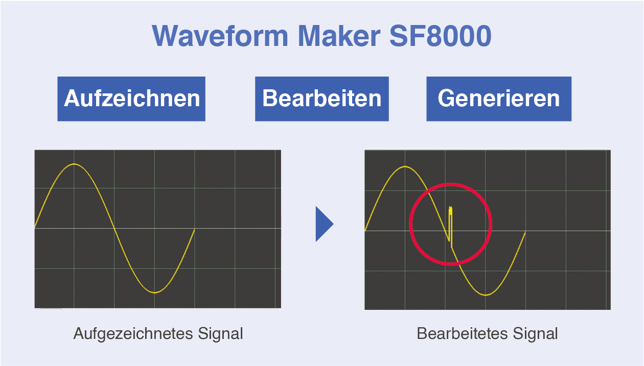 - Erstellung benutzerdefinierter Signalformen – zur Simulation von Grenzfällen und dem Entwurf von Tests, die über aufgezeichnete Daten hinausgehen.