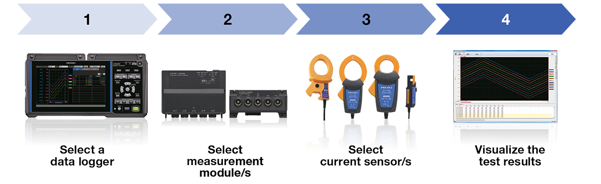 HIOKI also offers a variety of other current sensors for the LR8450 suitable for every application. Different sensor types can be combined in accordance with your test requirements: from 2 A to 6000 A.4