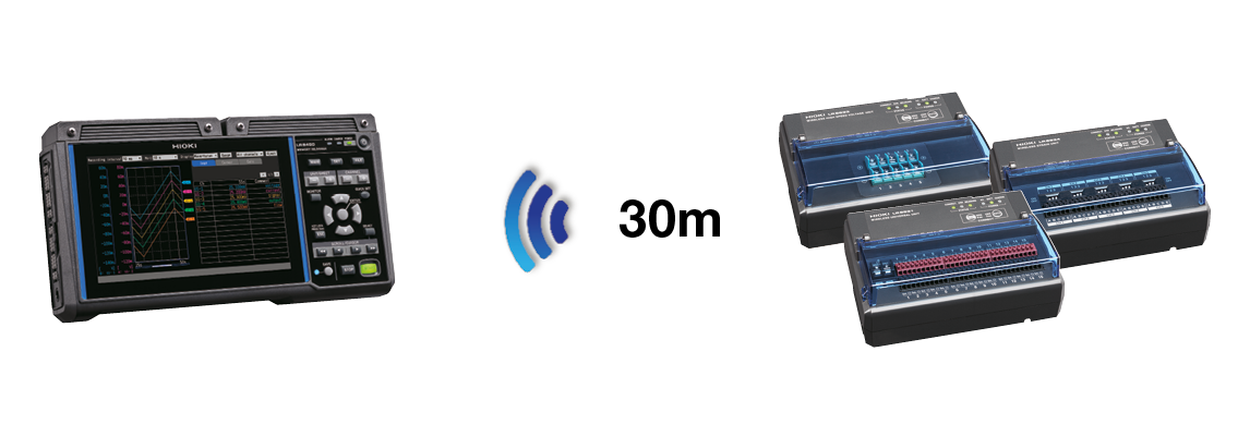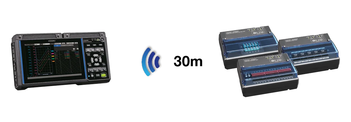 Use the wireless LAN to connect the data logger to a PC. Place the instrument up to 30 m away from the PC, from which you can control the logger and monitor your data in real-time.